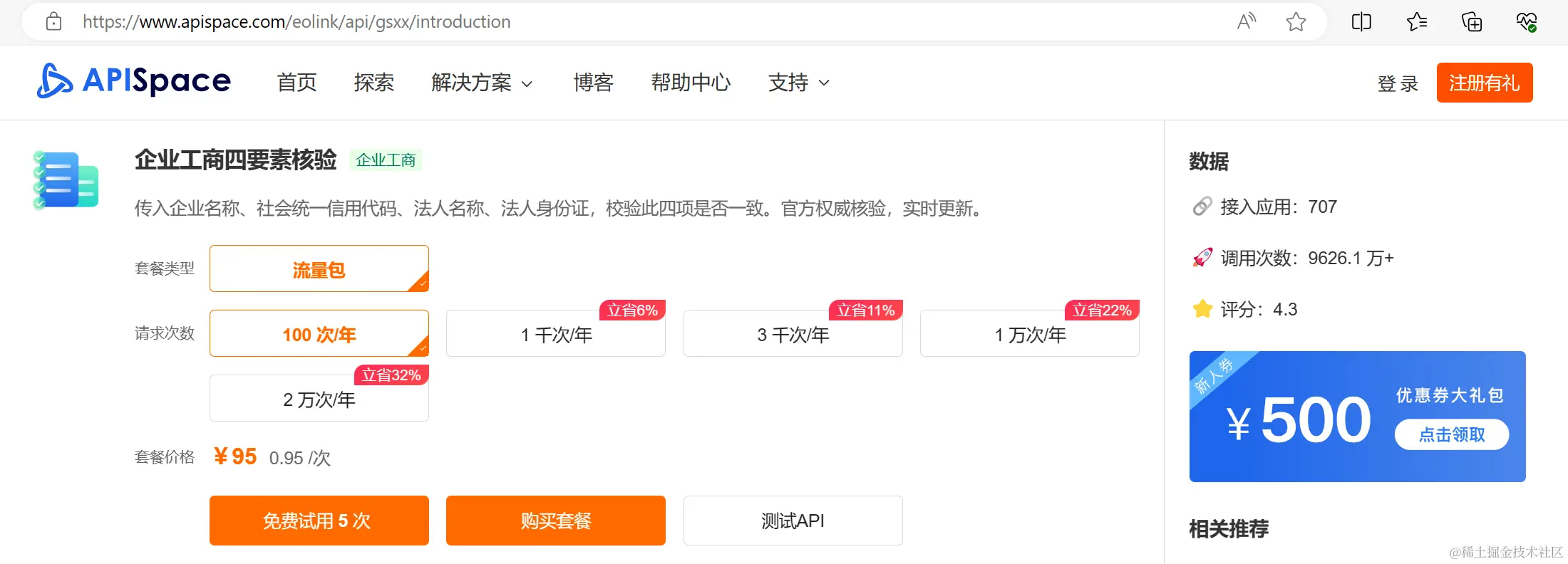 APISpace 的 企业工商四要素核验API,传入企业名称、社会统一信用代码、法人名称、法人身份证,校验此四项是否一致。官方权威核验,实时更新。