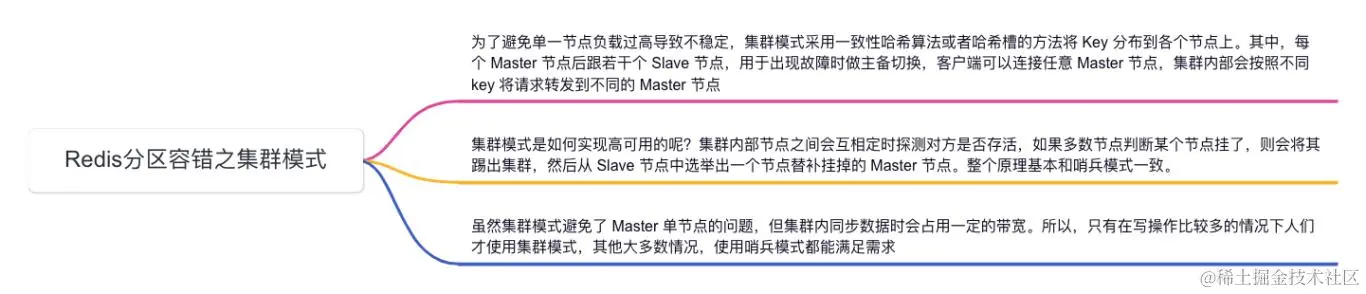 Redis的集群模式是为了避免单一节点负载过高导致不稳定的一种解决方案。它通过一致性哈希算法或者哈希槽的方法将数据分布到多个节点上,从而分散负载。这样一来,即使某个节点负载较高或者故障,也不会对整个集群产生太大影响。