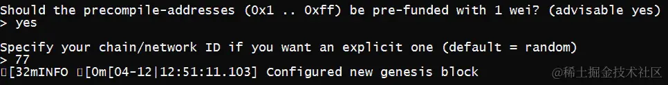 配置新的创世块– 因为我们需要创建一个创世文件,这是它的第一个区块: