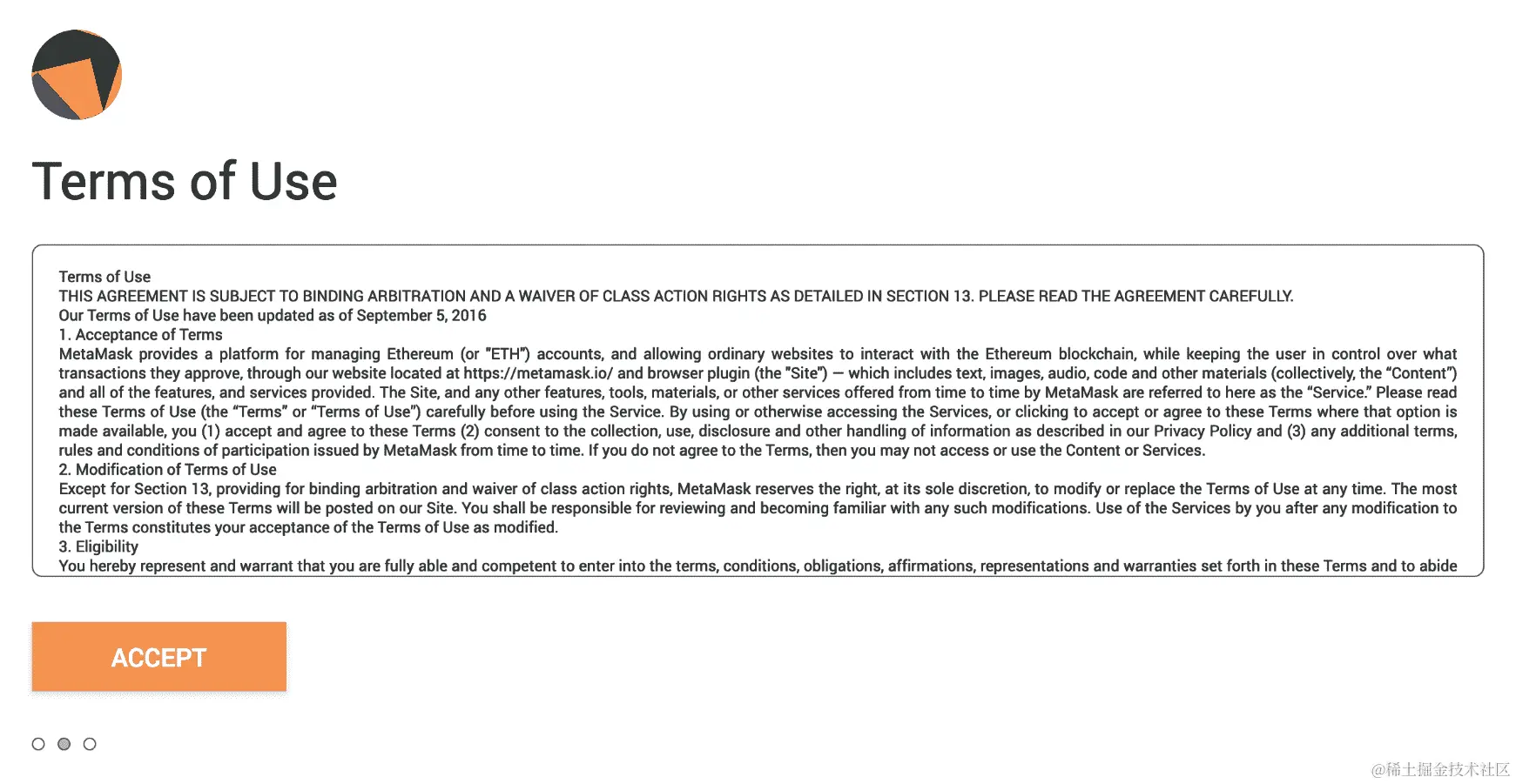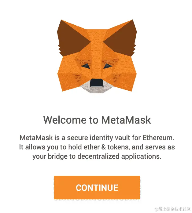 - 然后,你可以点击刚刚安装的狐狸图标来启动 MetaMask,它将打开这个页面: