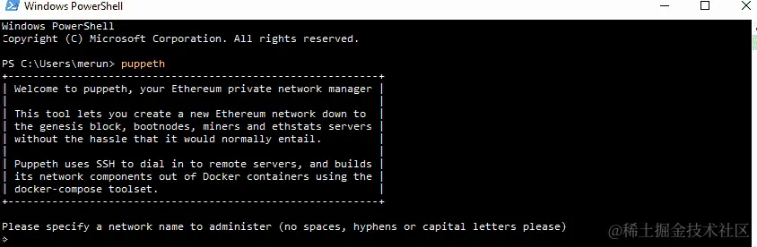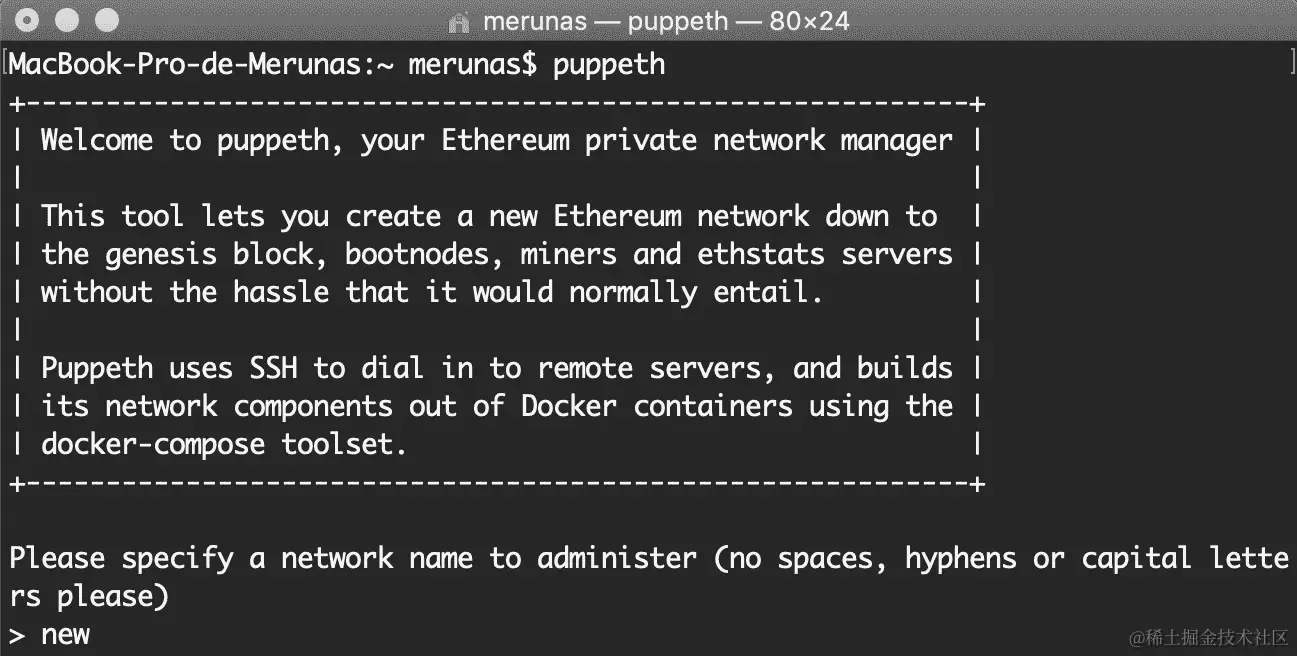 如果你无法执行puppeth或者在尝试时出现错误,那是因为你安装geth时没有安装它。请确保重新打开 Geth 安装程序,并在询问时勾选开发工具,因为那里才包括了puppeth。然后重新打开你的命令行或终端窗口查看变化。