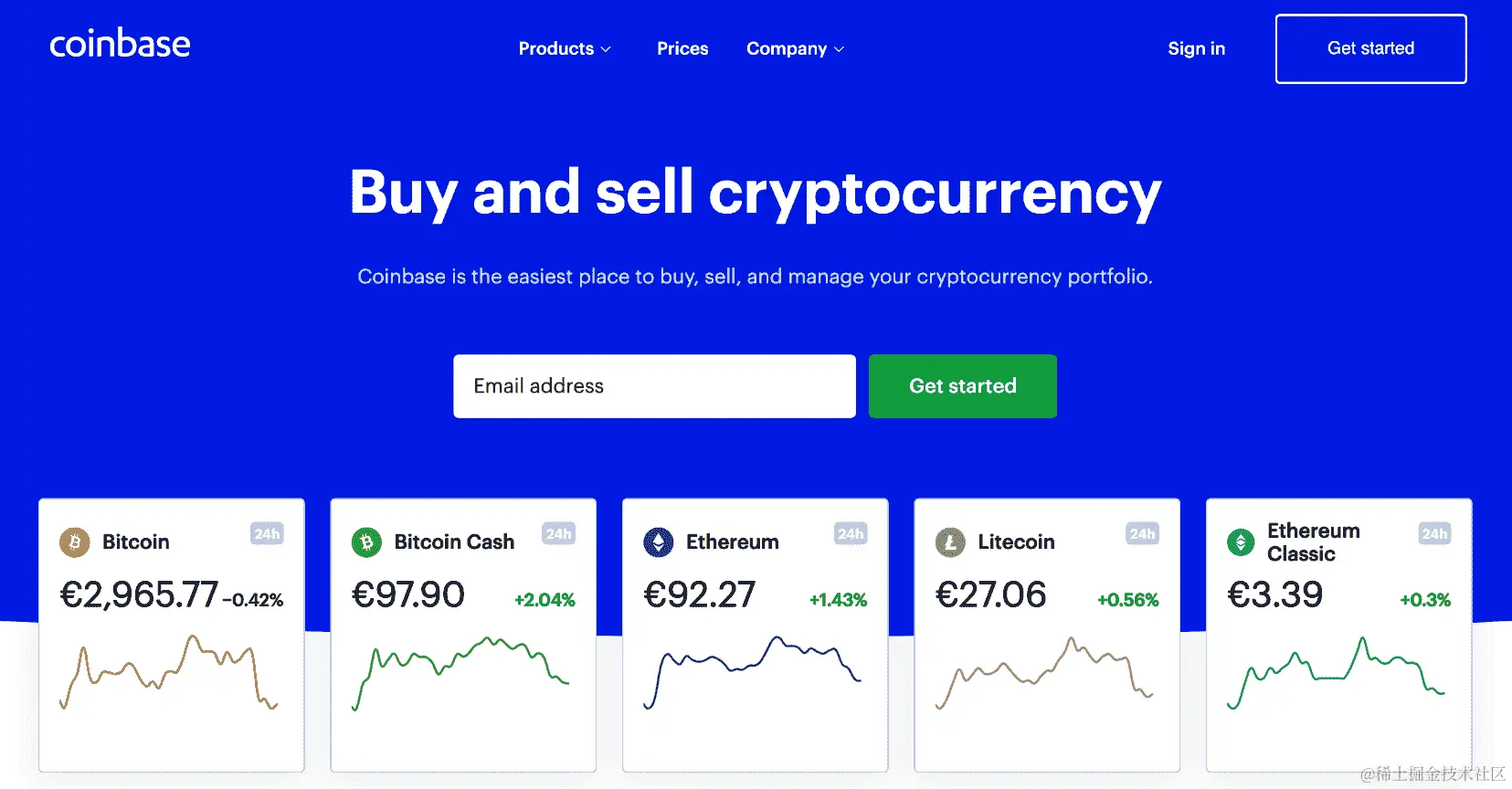 - 首先,打开他们的网站 coinbase.com: