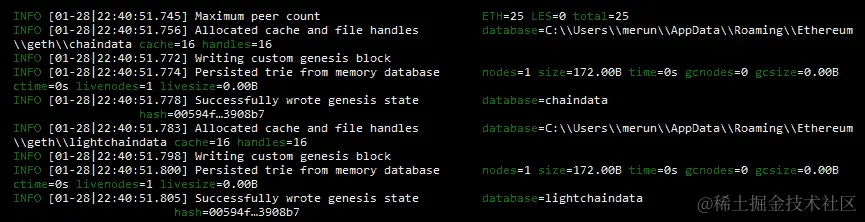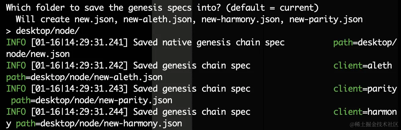 - 现在,你应该把配置文件放在选定的文件夹中。要在 Geth 上加载你的自定义区块链,使用这个命令和你刚刚导出的自定义初始区块文件位置: