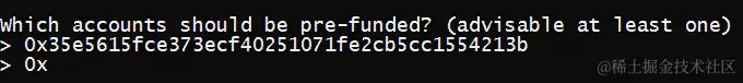 接下来,你需要提供你刚刚创建的 Geth 账户,因为它需要一个预充值账户用于初始化。只需复制并粘贴你收到的地址。如果你忘记了,打开另一个终端,输入
