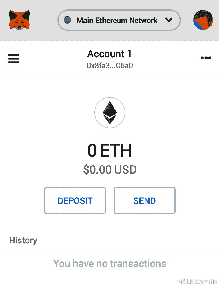 - 你可以简单地忽略这一点,并稍后添加资金。就是这样——现在你应该能够通过点击扩展栏上的小橙色狐狸来使用 MetaMask: