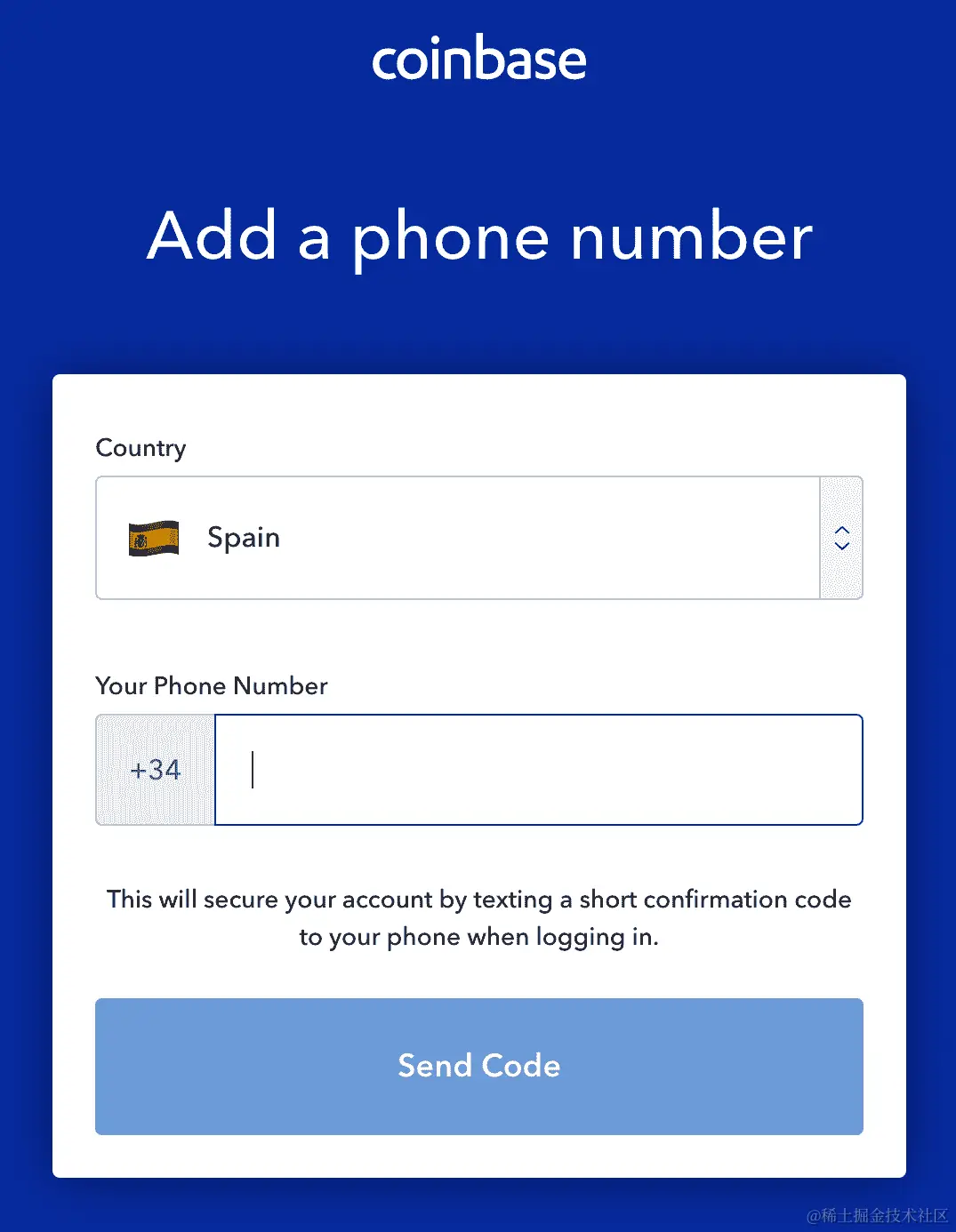 - 确认您的电子邮件地址和登录后,您将被要求添加您的电话号码以进行安全措施,因为此类账户处理大量资金,他们希望拥有最大数量的安全点:
