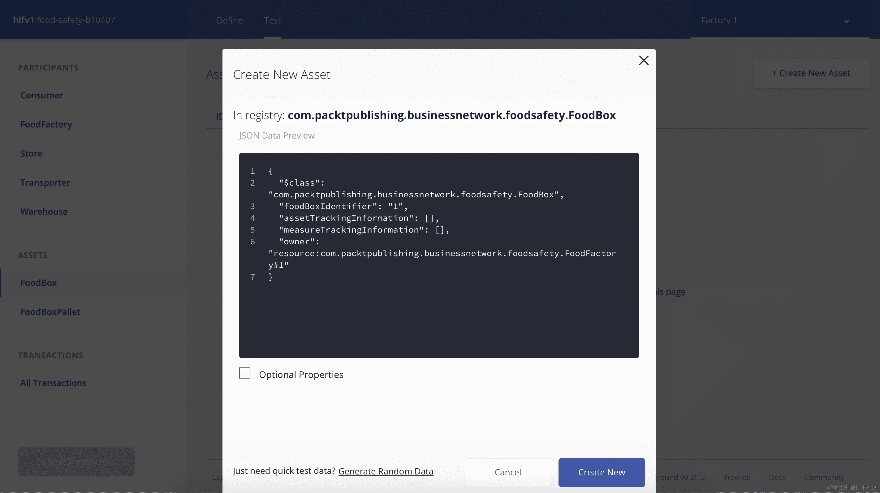我们链条中要管理的资产将是一箱装满鸡腿的箱子,我们的另一个资产将是一托盘装满装有鸡腿的箱子。在食品链中,我们将研究以下参与者的流程:制造商、配送中心和零售商。