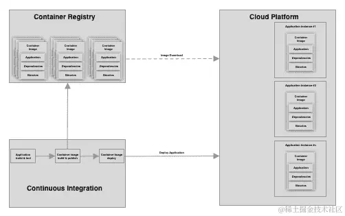 每个平台都有自己使用容器化应用程序部署模型的方式,如下图所示: