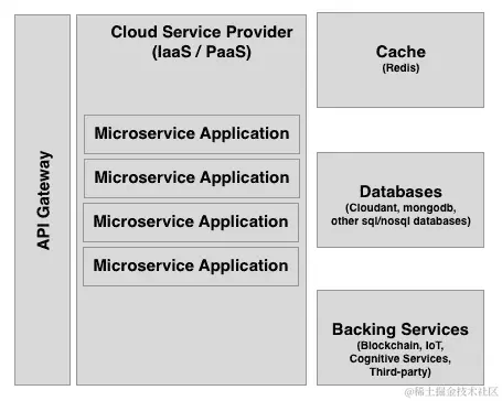 云计算为部署应用程序创建了一个抽象的环境;我们使用虚拟运行时。这意味着我们没有位置意识,也不能保证我们的应用程序会留在同一个数据中心或虚拟机中。我们甚至不能确信应用程序的 IP 地址在 10 分钟后仍然相同。以下图表显示了使用 IBM Cloud Public(Bluemix)成功应用的云应用程序的参考架构: