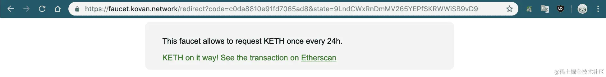 在发布你的以太坊地址后,将链接粘贴到水龙头上,你将在几分钟内收到你的以太币。这个网络的好处是与 MetaMask 兼容,而且区块时间非常快。