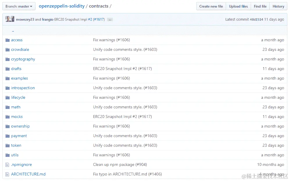 Zeppelin 在以太坊领域已经有很长时间了。他们构建了一些最有用的智能合约,比如用于防止溢出问题的 SafeMath,并且有一个充满了安全合同的 GitHub,几乎可以即插即用。他们的智能合约分布在许多文件夹中。为了理解所有这些压缩信息,我们将逐个浏览这些文件夹,为您节省数小时混乱并帮助您了解这些合同的潜力。您可以在官方 GitHub 仓库中访问它们:github.com/openzeppelin/openzeppelin-solidity,看起来像这样: