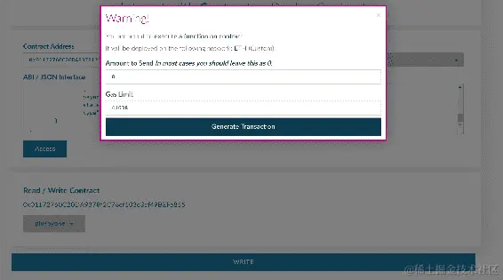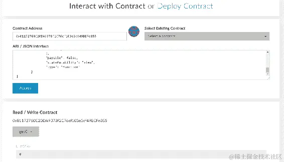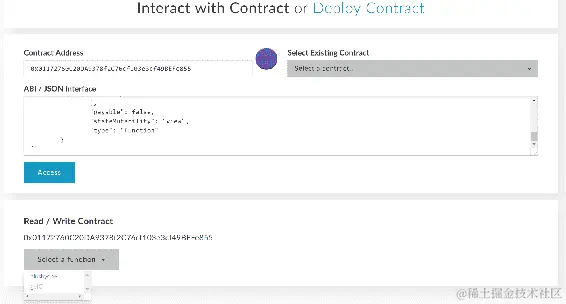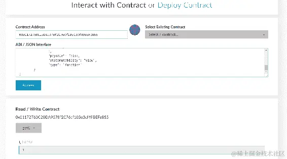 现在选择 TwoFactorAuth 选项,在占位符中提供合约地址并使用 Load contract,然后单击 At Address 按钮,如下截图所示: