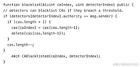 - 当一个恶意 CA 频繁地表现出异常行为时,检测器现在可以将其加入黑名单,如下所示:
