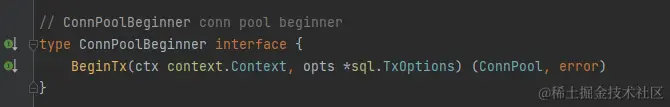 到这里还没完,因为数据库最后看的是事务,因此要用这个 ConnPool 去实现“事务接口”: