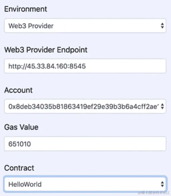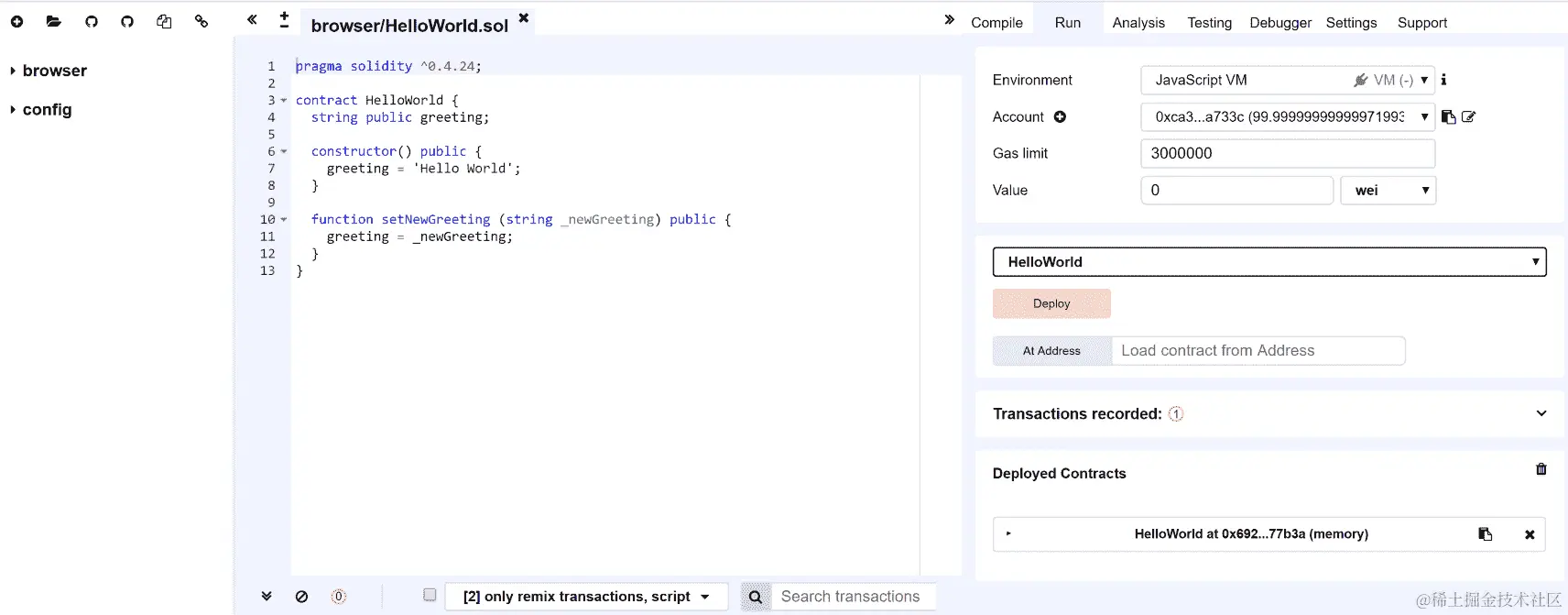 让我们使用 Remix 来测试我们的活动。我们选择 JavaScript VM 选项。