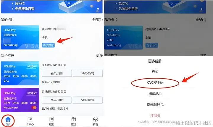 开完卡在这里获取CVC安全码,千万保存好!!!