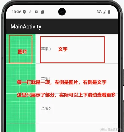 - 最终呈现的每一行的效果就是左侧是图片,右侧是文字
