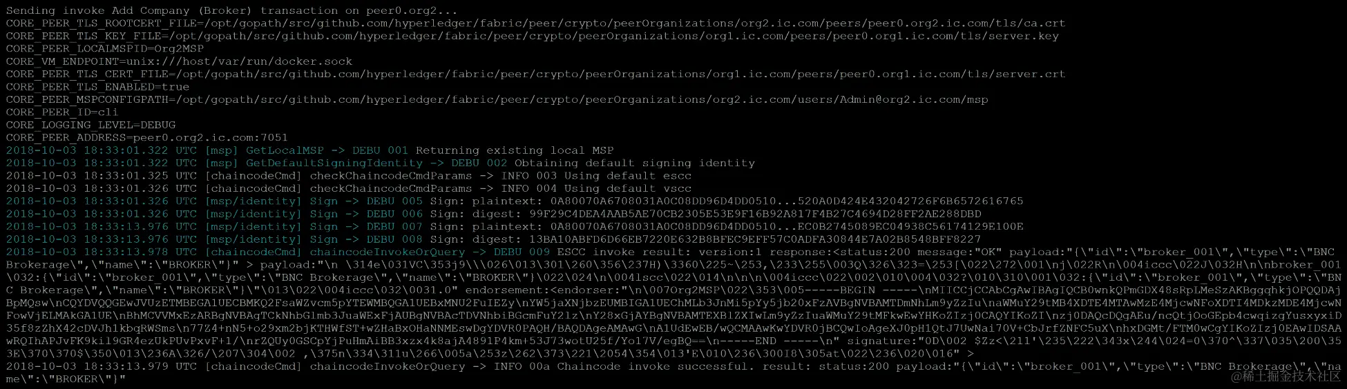 如果交易提交成功,这将入职经纪人。重复相同步骤以入职保险人,如下所示: