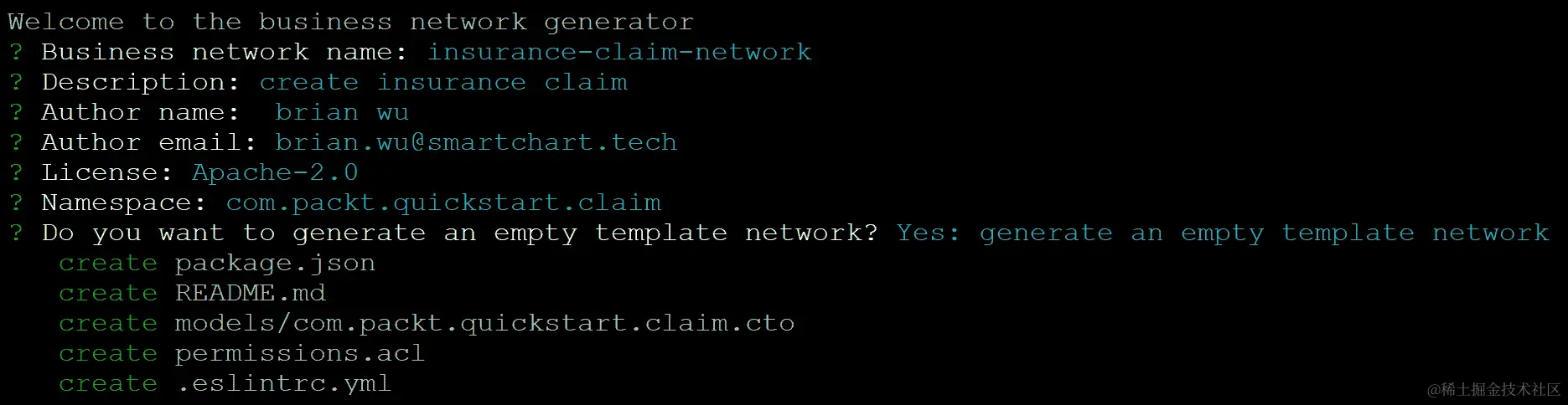 它会提示几个问题。输入insurance-claim-network作为网络名称,并选择空模板网络,如下截图所示: