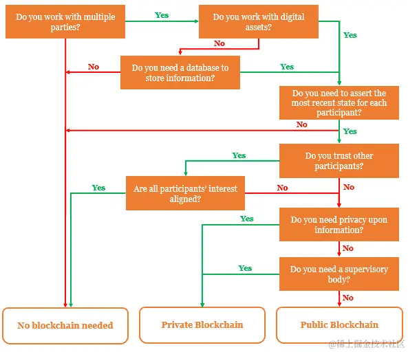 一旦问题被确定,您应该专注于最简单的可用解决方案,并回答以下问题:我是否真的需要区块链?