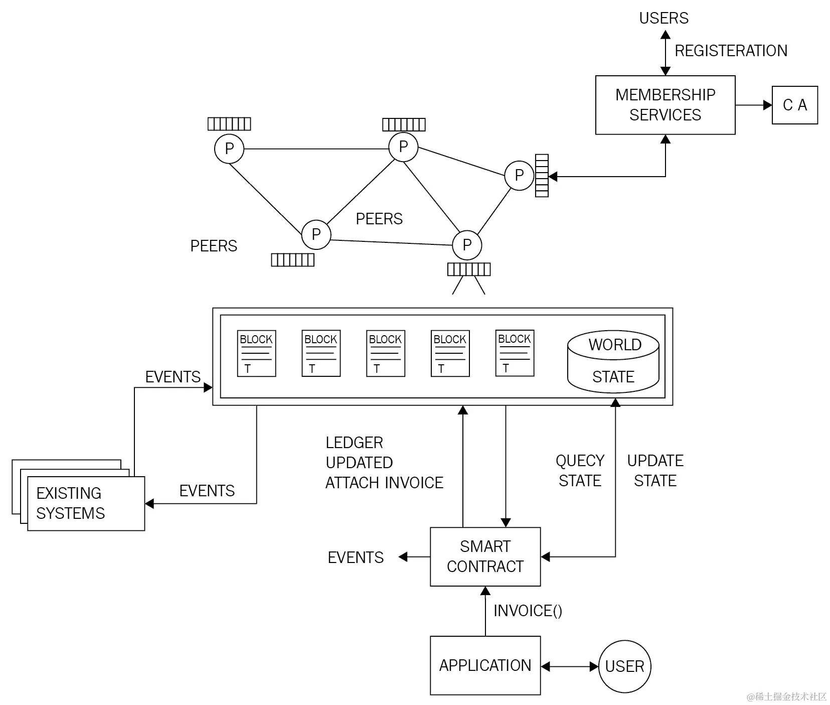 一般来说,从组件的角度来看,Hyperledger 包含了这里描述的各种元素:
