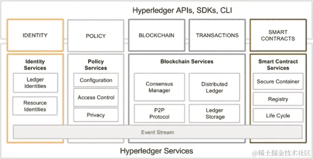 在接下来的章节中,我们将介绍一个由 Hyperledger 项目发布的参考架构。由于这项工作正在不断而严格地发展,因此其中可能会有一些变化,但核心服务预计将保持不变。