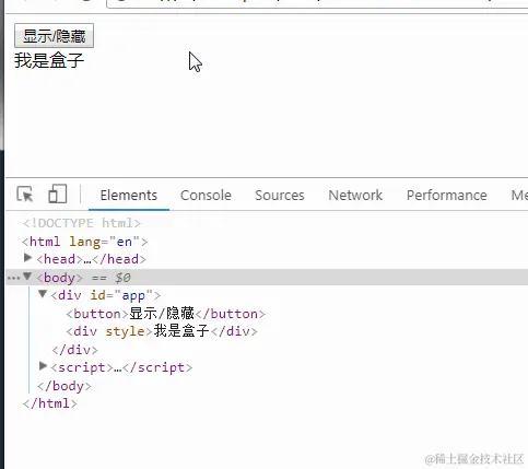 举例如下:(点击按钮时,切换和隐藏盒子)