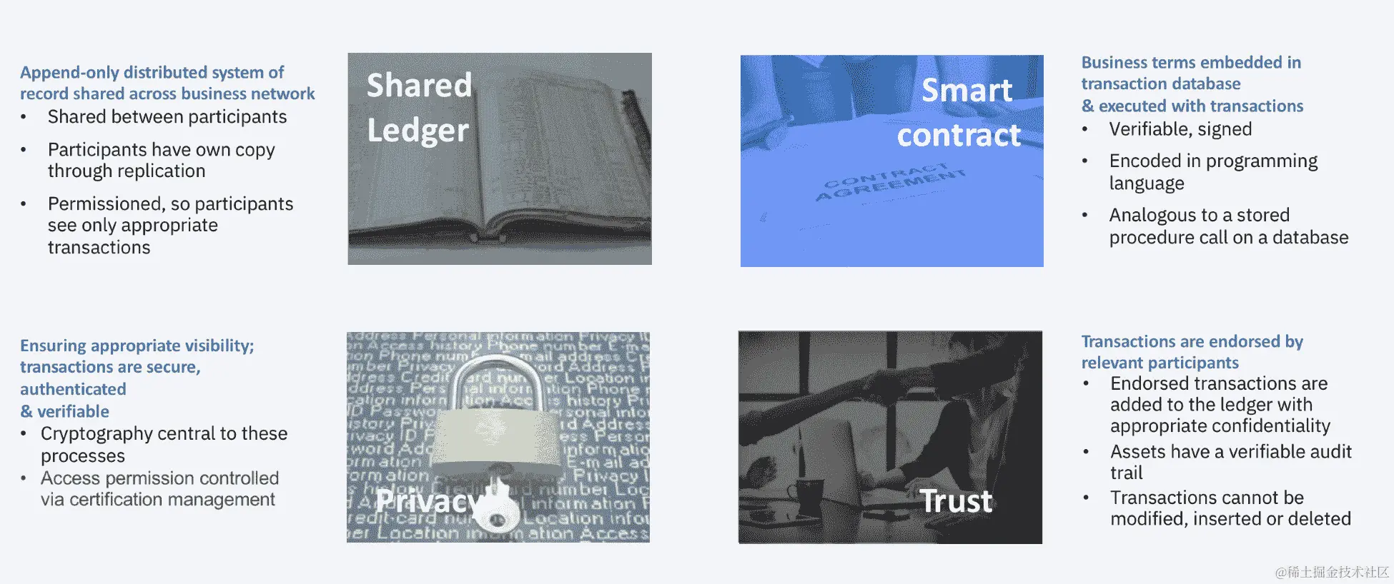 区块链作为一种技术平台具有非凡的潜力。在企业中,区块链可以提供: