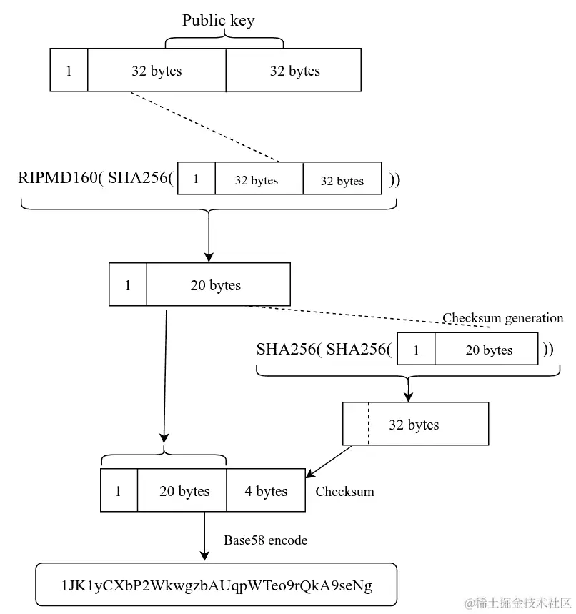 比特币使用地址来识别比特币用户。这些地址是从用户的秘密密钥派生的公共密钥的编码版本。让我们考虑一个银行业务的例子:爱丽丝通过签署一张支票并寄给鲍勃来向鲍勃转账。比特币使用类似的方法,通过使用秘密密钥签署交易并提供接收方的账户号码(比特币公共地址)来完成交易。唯一的公共信息是账户号码,这与将比特币地址公开的概念类似。