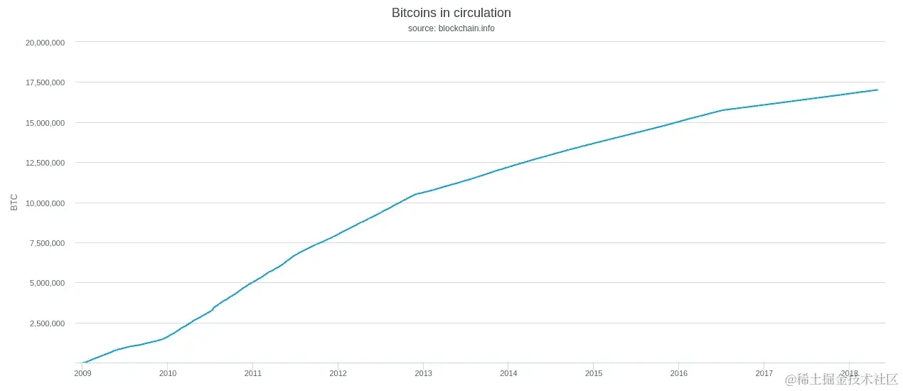 因此,每当矿工创建一个新区块时,新的比特币就会产生,并在比特币网络中流通。对比特币网络的流通总量设置了一个上限,它被硬性限制在 2100 万枚硬币。