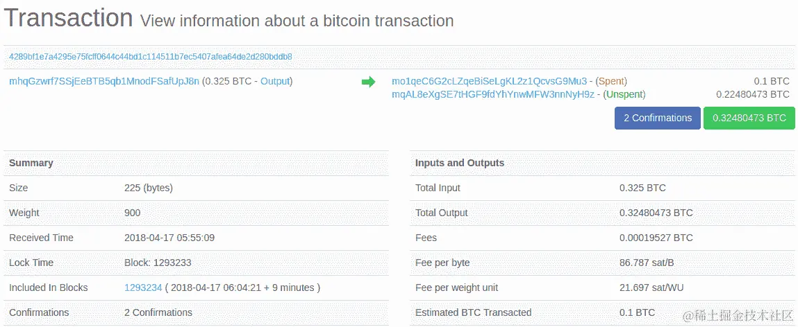 通过指定交易 ID,可以使用 getrawtransaction RPC 命令获取任何交易的详细信息: