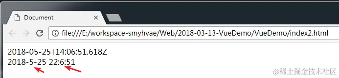 第一行代码显示的是默认的date。第二行代码显示的是格式化之后的date,说明过滤器是起到了作用的。