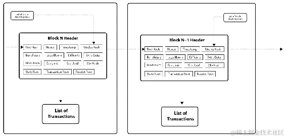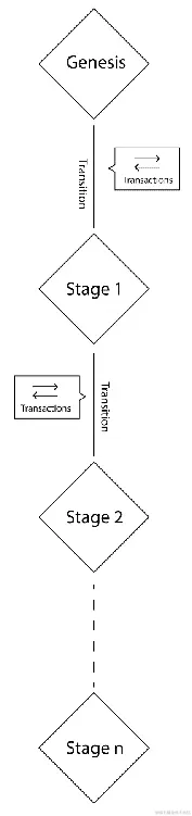 以太坊区块链中的状态变化从区块链的创世区块开始,如下图所示: