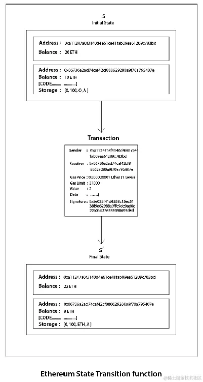 以太坊中的状态由对象组成,每个对象称为一个账户。以太坊中的每个账户包含一个 20 字节的地址。每次状态转换都是各个账户之间的价值和信息的直接交易。在账户之间或对账户进行的每次操作被称为状态 转换。以太坊中的状态转换是通过以太坊状态转换函数完成的。