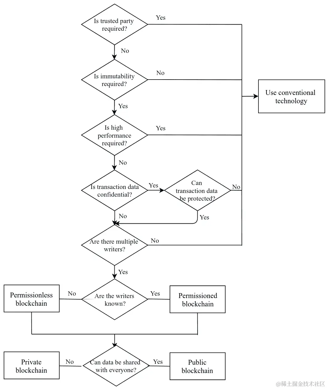 所有非盈利 DAO 的属性都符合区块链决策树的条件,这使得 DAO 成为区块链的理想用例。