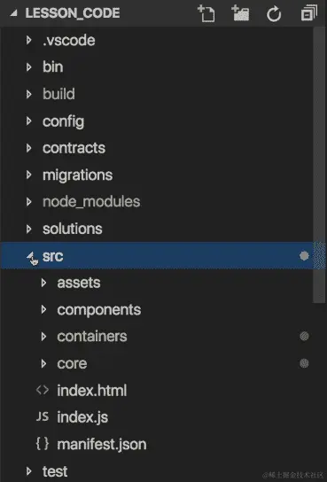 我们合同的源代码存储在contracts文件夹中。当我们编译它们时,它们将发送到以太坊区块链。编译还会创建一个存储在build/contracts文件夹中的合同元数据。以下截图显示了我们将要构建的应用程序的结构: