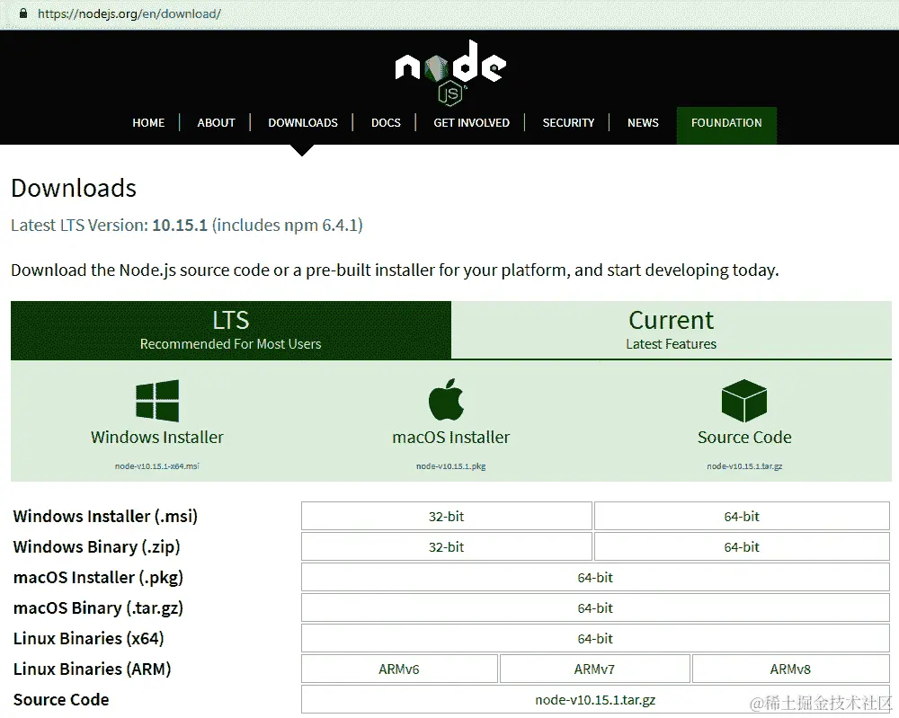 Node.js 主要用于实现后端 API,这些 API 可以在浏览器之外运行 JavaScript 代码。在本书中,我们将使用它来连接我们的合约、GUI 和编程后端到我们的网站。你可以通过访问 nodejs.org/en/download/ 并选择适合你操作系统的正确包来安装 Node.js。Node.js 的首页看起来类似于以下屏幕截图:
