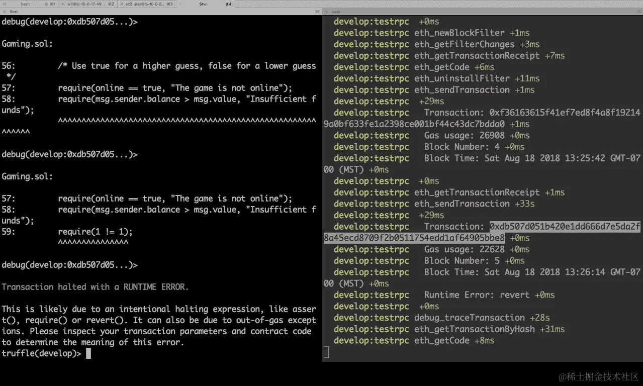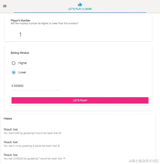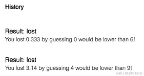 当这个渲染时,它会转化为一个句子,类似于失去十个以太币,或者正确的值是什么,然后将该轮结果添加到历史窗口中,如下面的截图所示:
