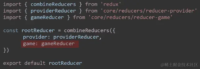 当我们的 reducer 接收到 dispatch 函数的动作时,它会创建并发送此对象到 Redux 存储,并且还会发送所有其他可能存在的 reducer,因此我们有一个 rootReducer 常量,它组合了所有这些 reducer。以下截图显示了这是什么样子: