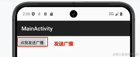 点击发送广播按钮之后,自定义的 BroadcastReceiver 可以接收到对应的消息