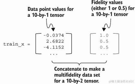 每个保真度提供的信息水平通过其与真实值之间的相关性来量化,该相关性是一个介于 0 和 1 之间的数字。相关性越高,保真度与真实值越接近。在 Python 中,我们将每个数据点的相关性值存储为特征矩阵中的额外列。