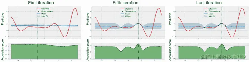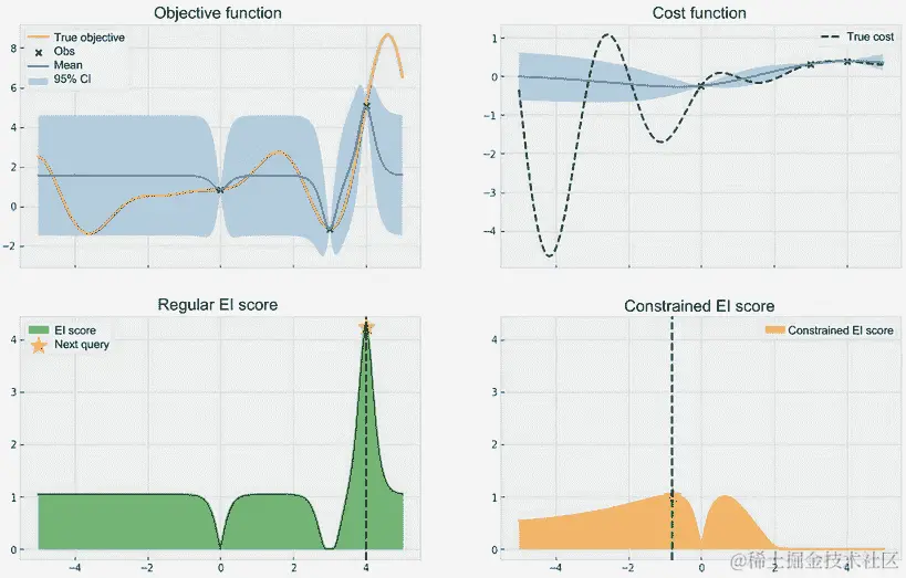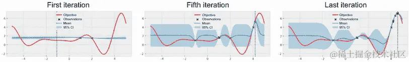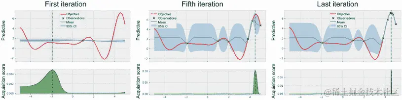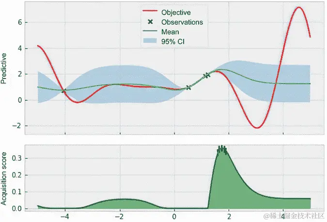 注:在 BayesOpt 中实现这一策略的方式特别简单,因为我们使用高斯过程作为目标函数的预测模型,我们已经有了每个动作的奖励率的上限。也就是说,我们已经有了在任何给定输入位置的目标值的上限。