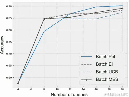 如果两个数据点具有相同的预测均值但不同的预测标准差,则具有较高不确定性的数据点将具有更高的分数。因此,该策略奖励探索。