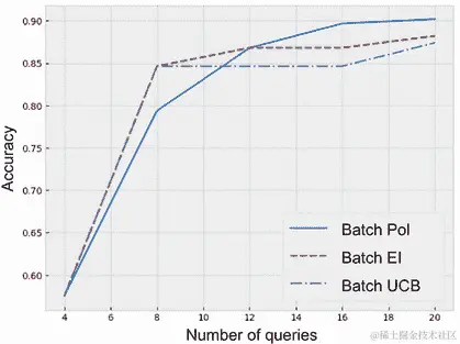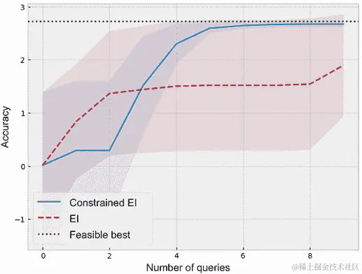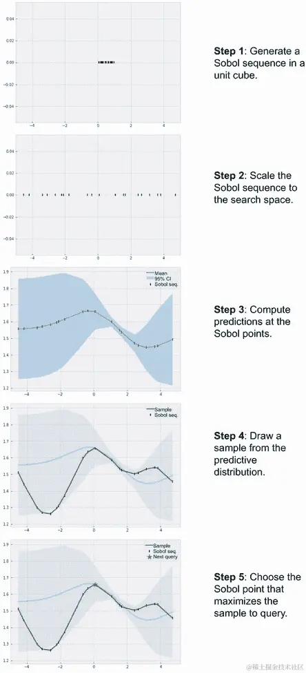 从 Sobol 序列中抽取的候选人数设置为 5,000,并且在使用辅助函数优化给定策略的获取分数时,使用 100 次重启和 500 个原始样本。