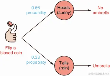 让我们举个简单的例子来具体说明这个想法。假设你某一天醒来发现外面虽然是晴天,但地平线上有乌云。你查看手机上的天气应用程序,看看今天是否会一直晴朗,以及是否应该带伞上班以防下雨。不幸的是,该应用程序无法确切地告诉你天气是否会晴朗。相反,你只能看到晴天的概率估计在 30%到 60%之间。