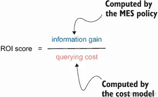 为了在信息性和成本之间取得平衡,我们使用 MES 策略的变体,通过查询成本的倒数对每个查询的信息量进行加权。该度量类似于经济学中的投资回报概念,并使用 BoTorch 中的