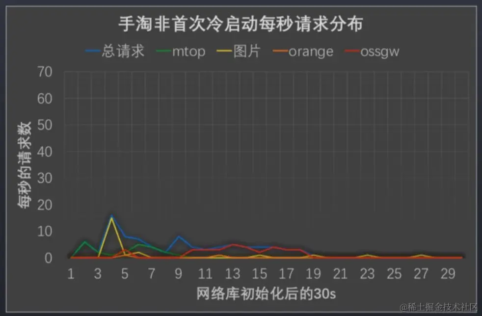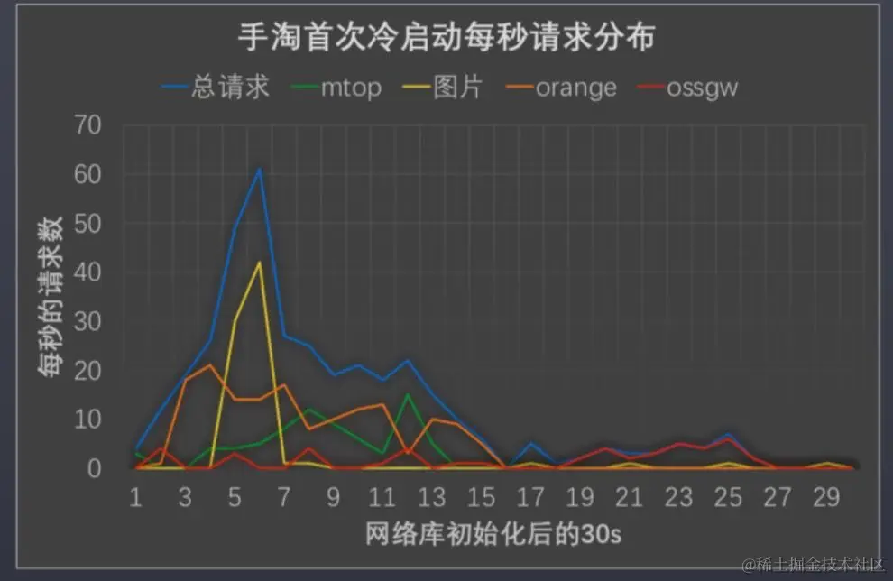 可以看到,手淘首次安装冷启动30s内,网络请求数达到 400上下。非首次冷启动30s内,请求数相比首装冷启减少,但依然在 100+。启动场景下,存在着以下几个问题: