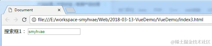 <input type="text" id="search" v-model="name" v-color="'green'">