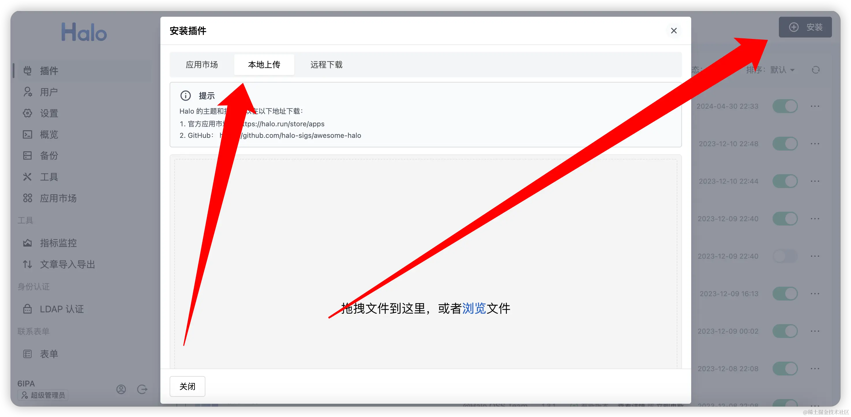 将.jar 插件拖入后台安装。