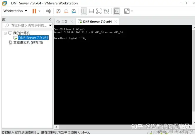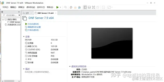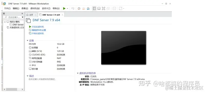 - 左上角 文件 打开 选择: 服务端-> DNF Server 7.9 x64.vmx